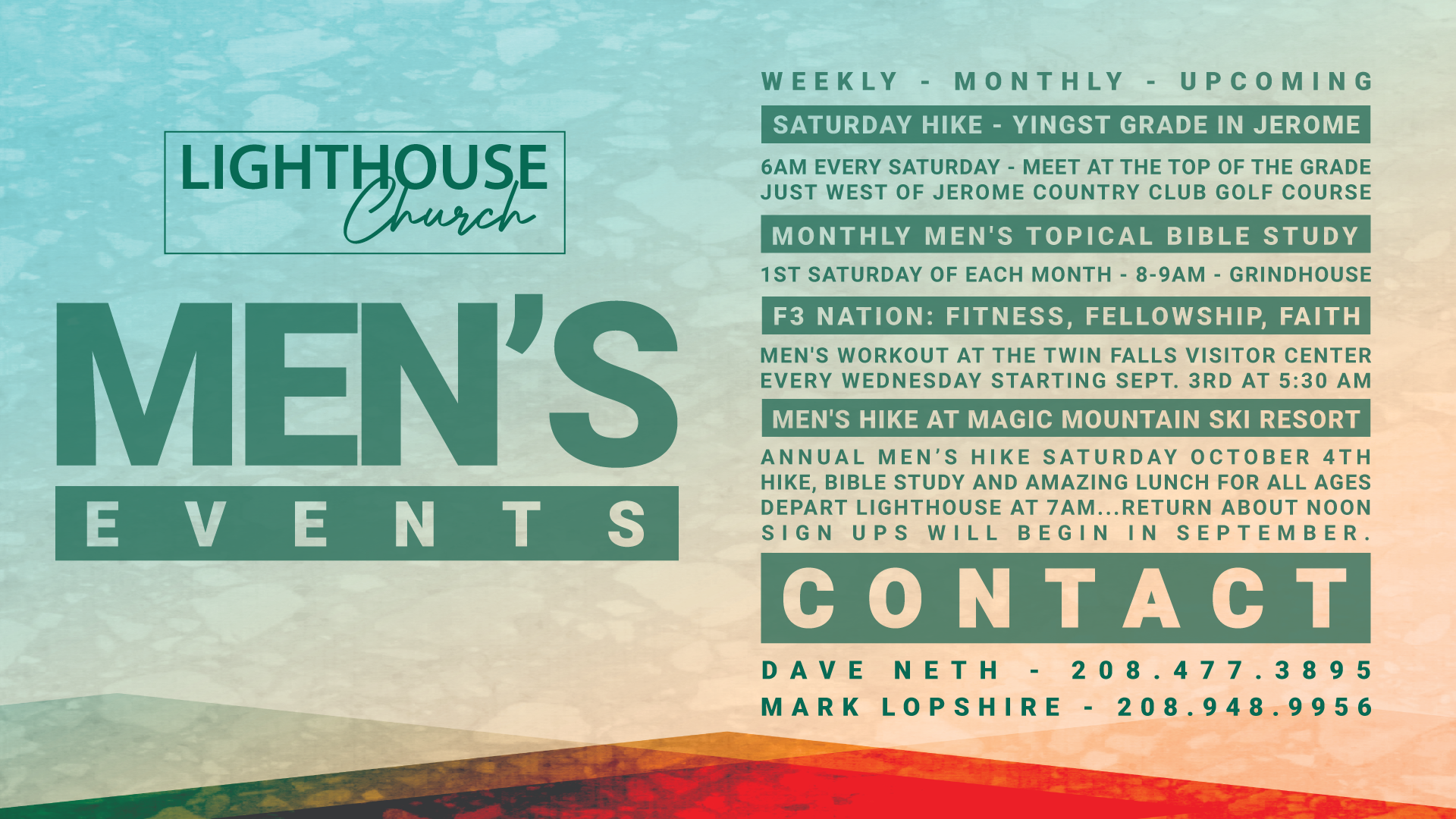 Lighthouse has a heart for strengthening men in our families, church and communities.